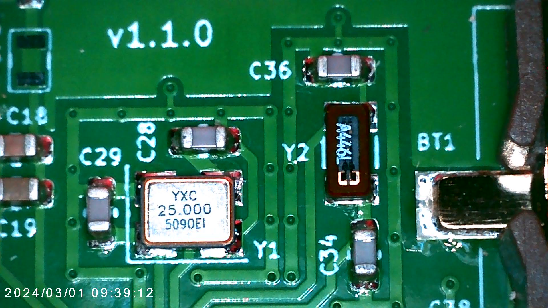 Y2, C34, C36 중 하나가 불량이고 교체하면 정상 작동할 확률이 높으나, 쉽게 교체할 수 있는 부품들이 아니긴 합니다.