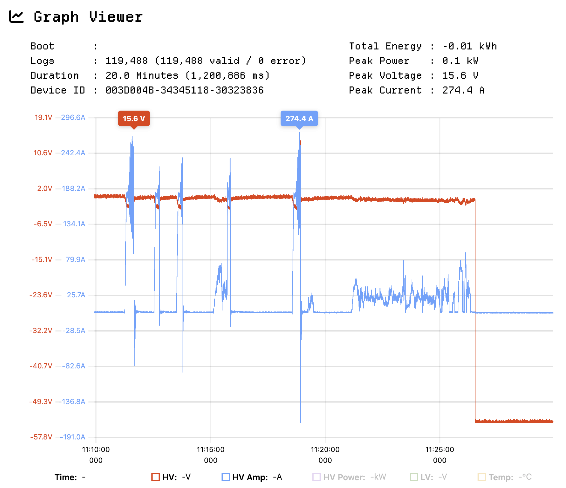 이는 에너지미터 영점 조정 시간을 지키지 않아서 발생하는 문제로, 정상적으로 데이터가 기록될 수 있도록 대회 전에 차량을 아래와 같이 수정해야 합니다.