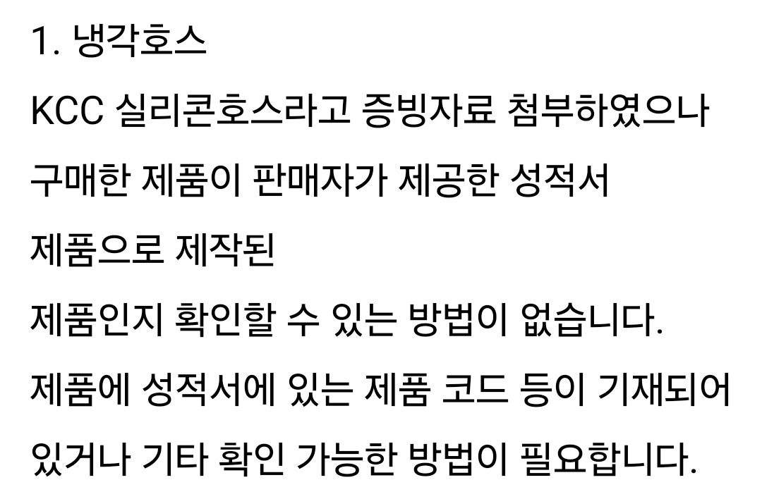 안녕하세요, 냉각수 호스 인증 관련해서 여쭤보고싶은 점이 있어 글을 쓰게 되었습니다.