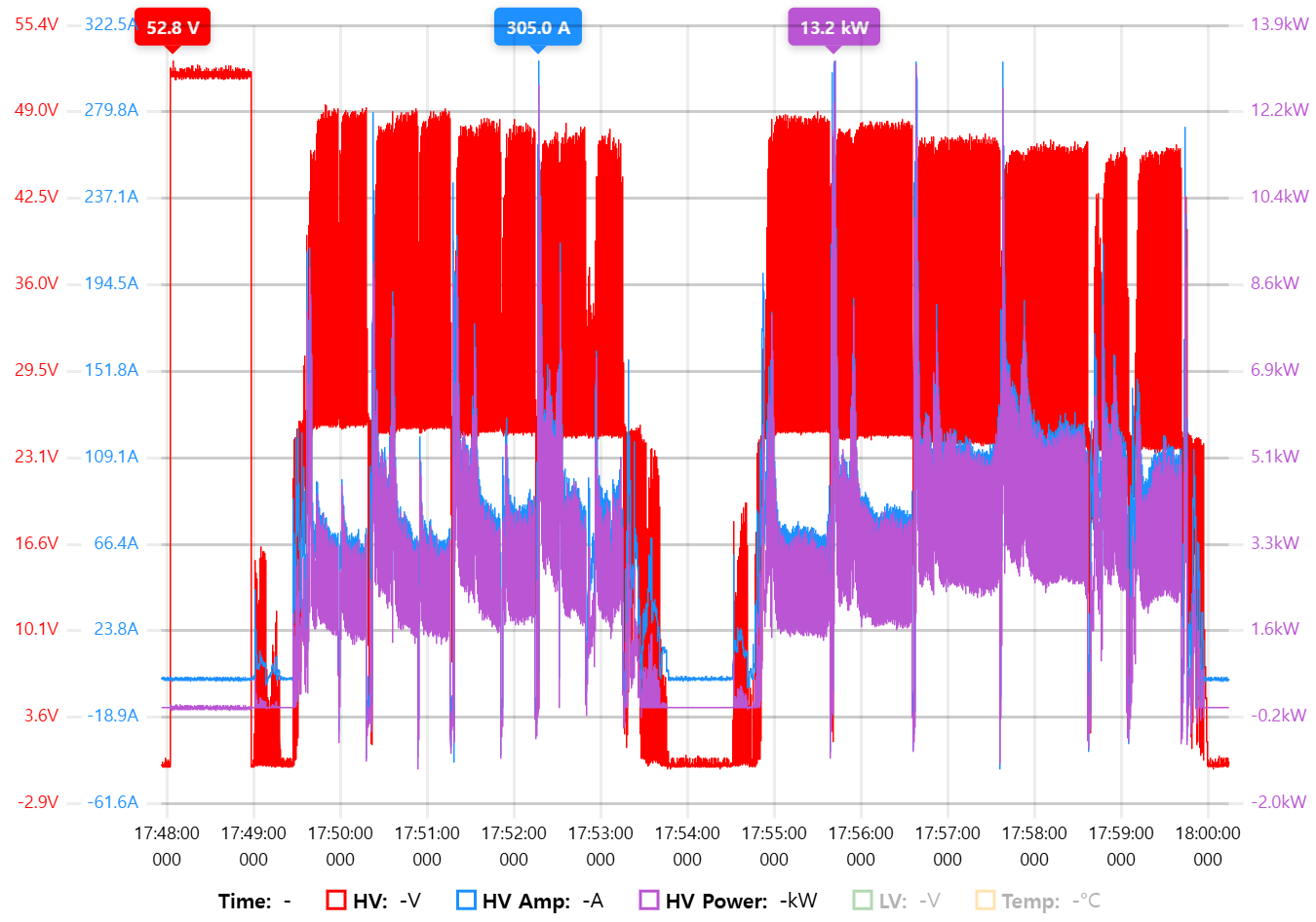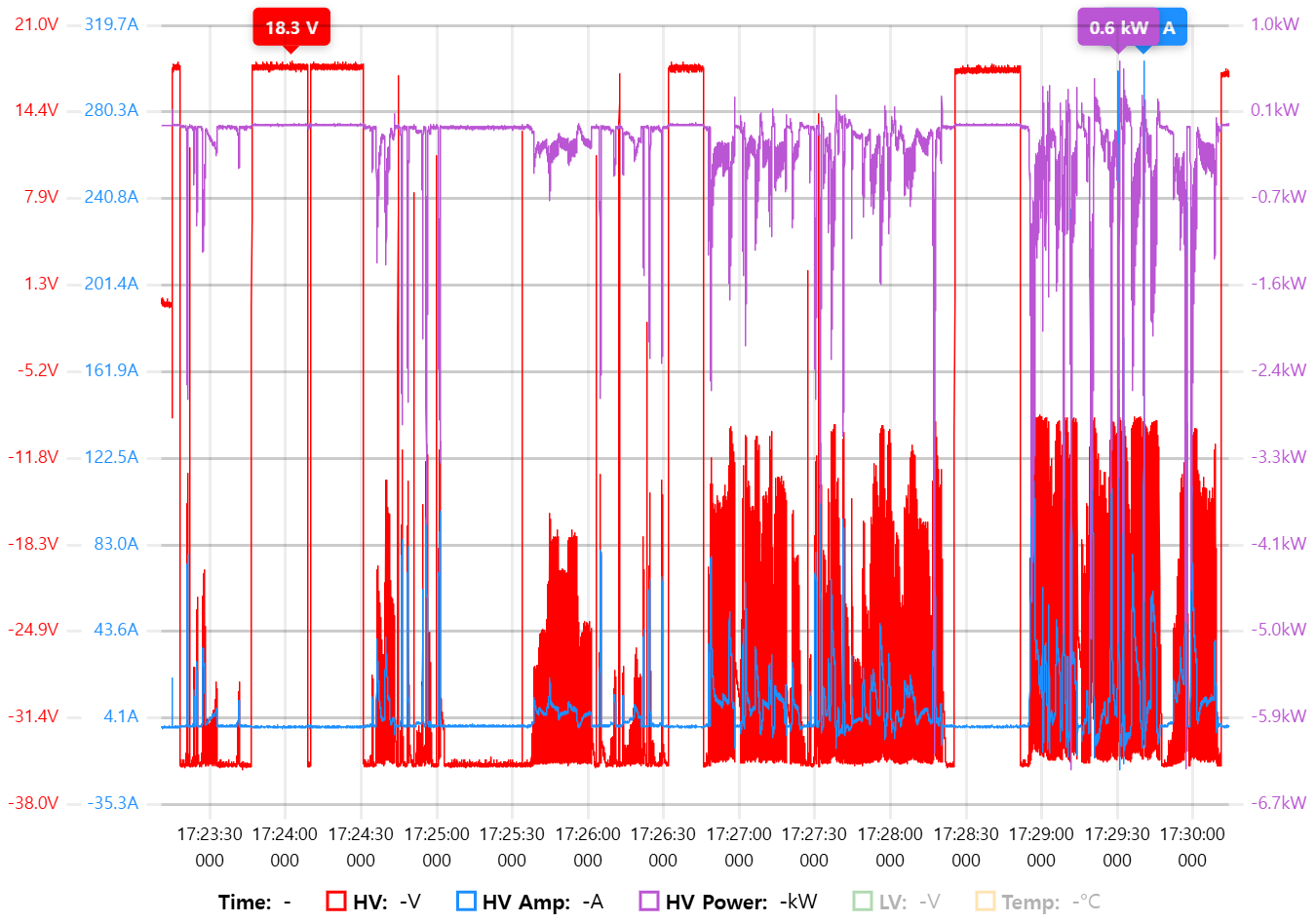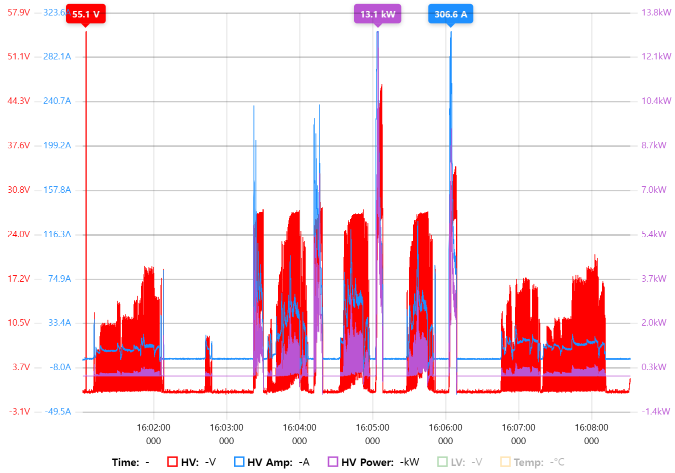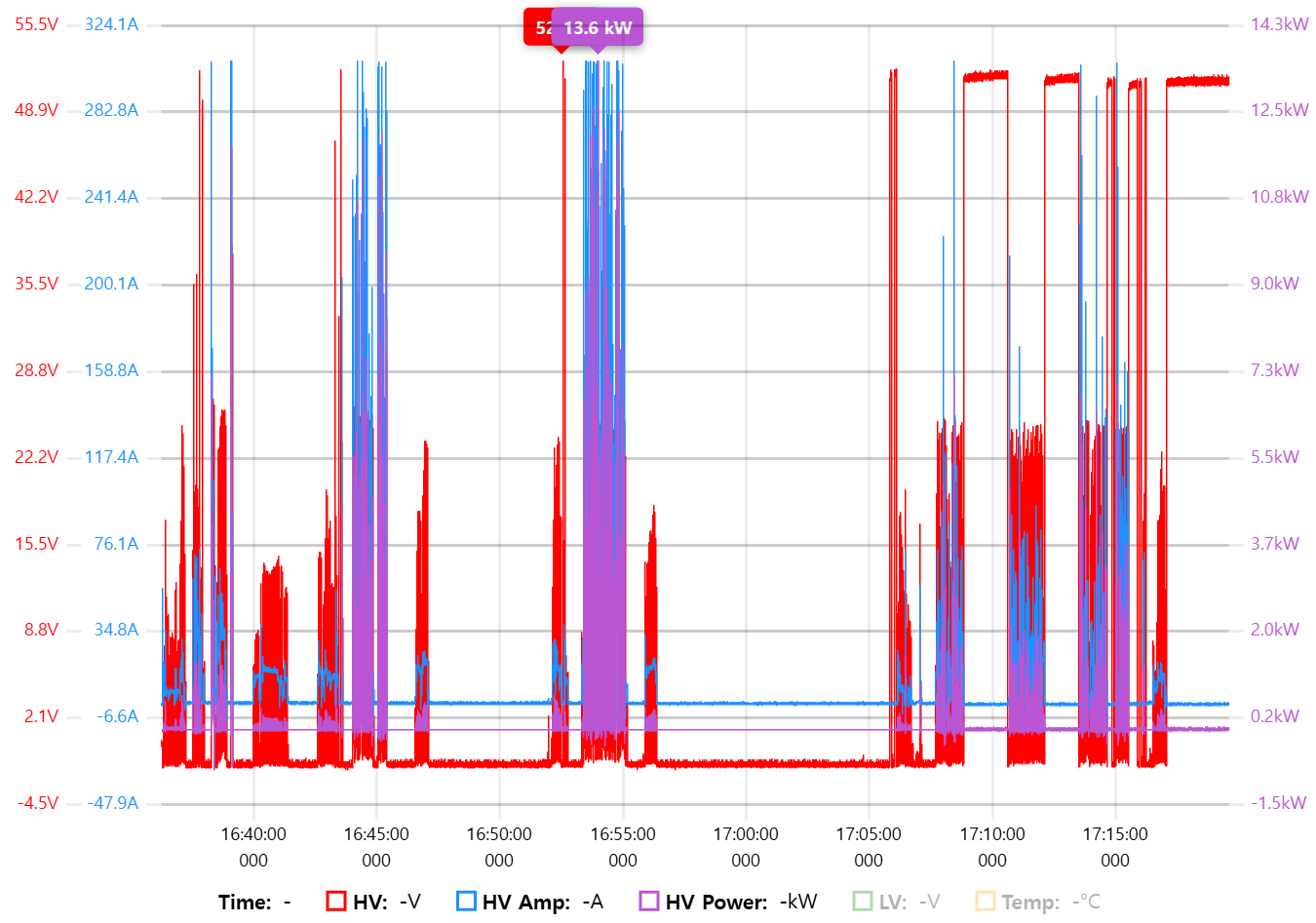 이때 컨트롤러 제어는 하지 않았으며, 출력 제한(10kW)은 신경 쓰지 않고 주행을 진행했습니다.