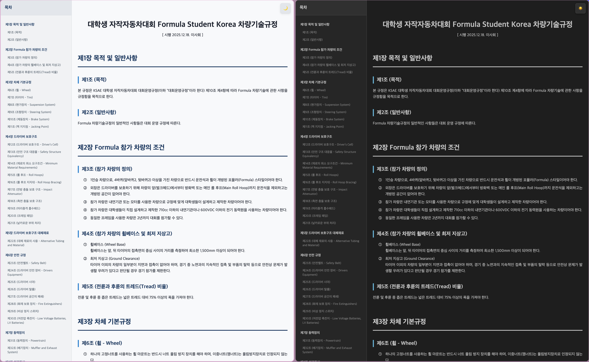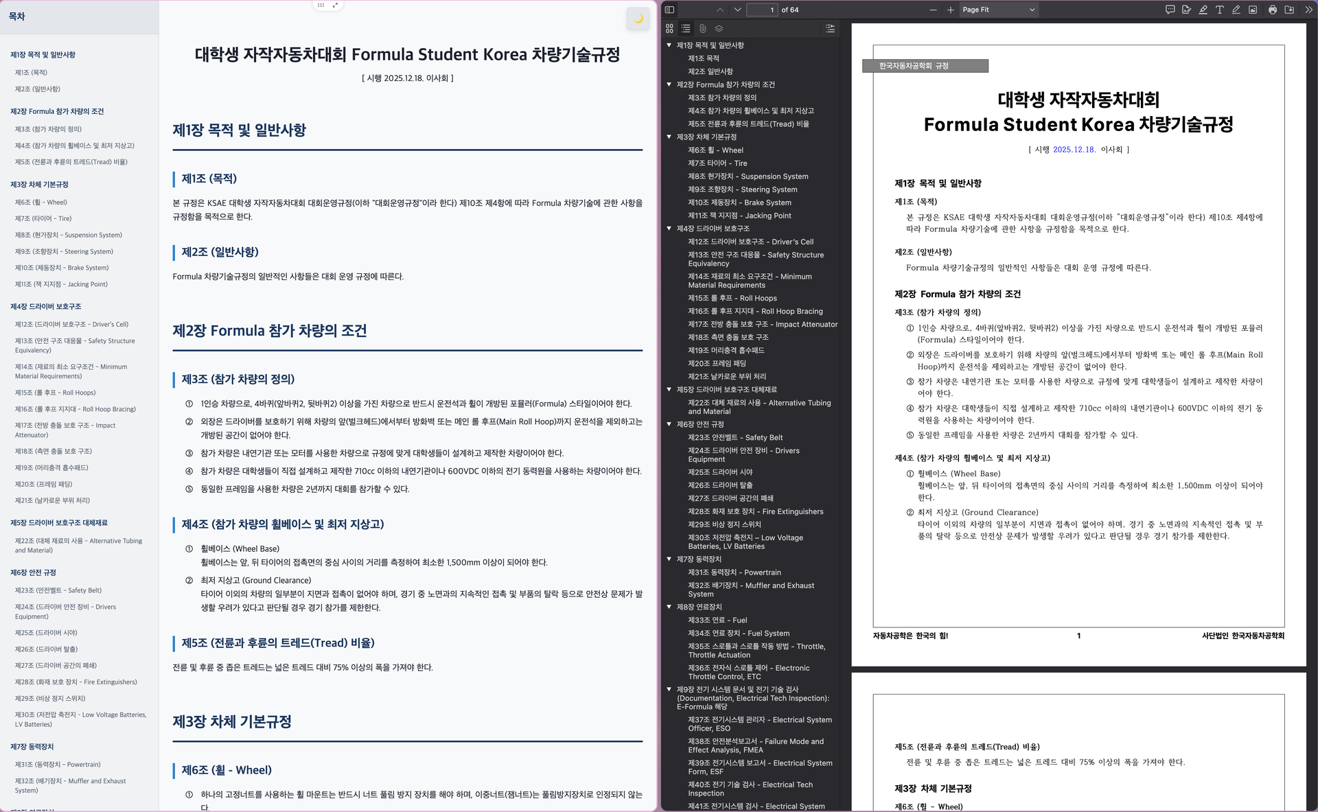 다만 공학회 홈페이지 성능이 많이 느린 관계로, https://fsk.luftaquila.io/rules 에서 역대 공식 규정집을 미러링하고 있습니다.