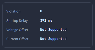 새로 추가된 필드인 Violation 은 설정된 출력 제한을 초과하는 데이터 포인트의 개수이며, Startup Delay는 해당 세션에서 에너지미터가 켜진 후 헤더를 기록하고 측정을 개시하기까지 소요된 시간입니다.